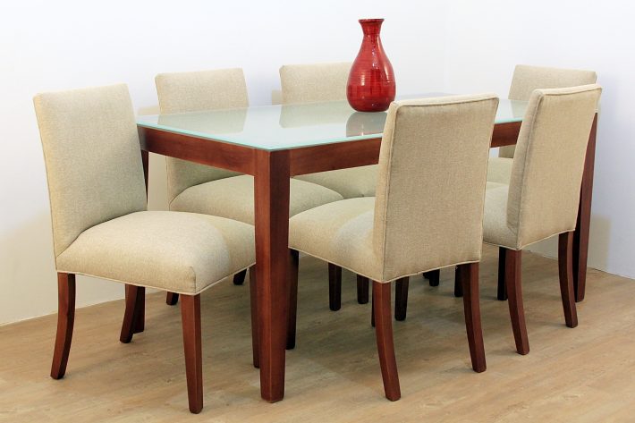 Detalles: Base de mesa con tapa de cristal de 10 mm + 6 sillas muy cómodas de asiento y respaldo tapizado y armadas con espigas de excelente durabilidad.