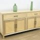 Detalles: Mueble de cedro para el comedor con 2 puertas abajo, ciegas replanadas y molduradas y 2 puertas arriba con marco de madera y cristal. Cuenta con estantes interiores y 2 spot con luces de led.